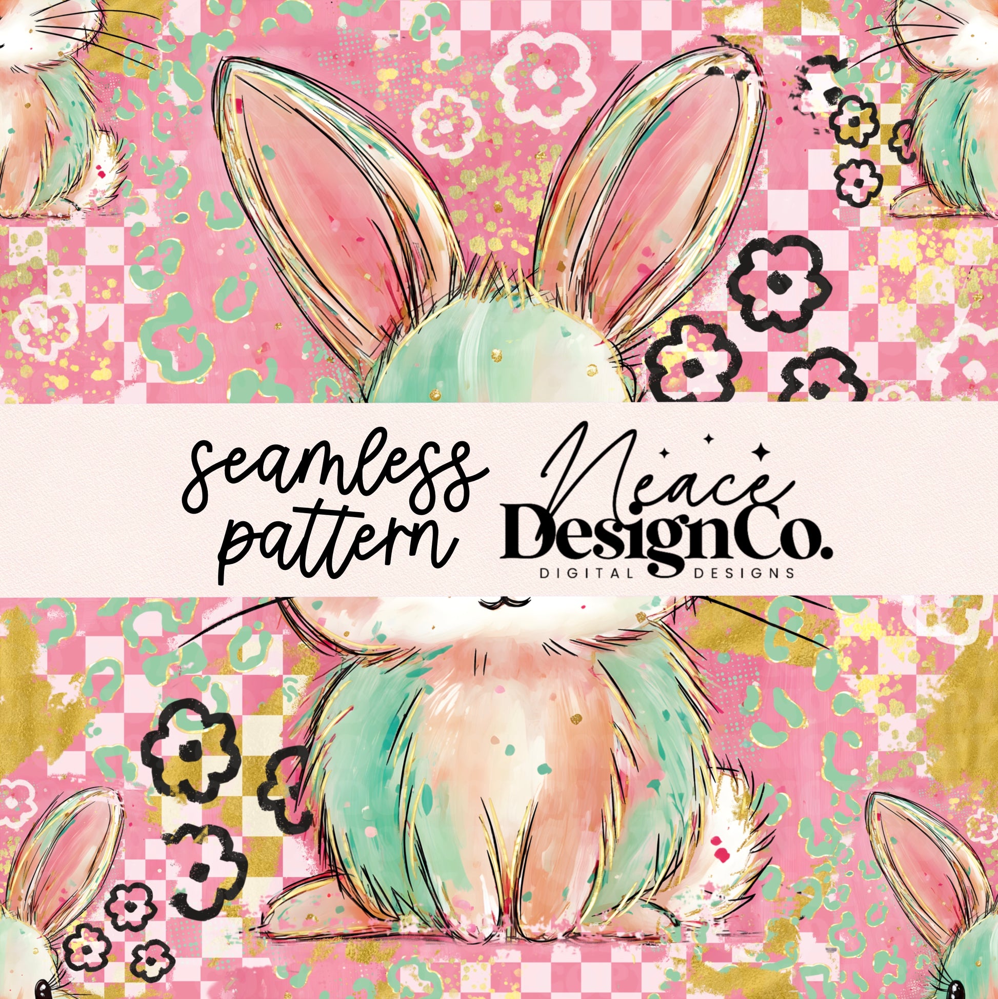 Brushstroke Preppy Bunny Seamless Digital PNG