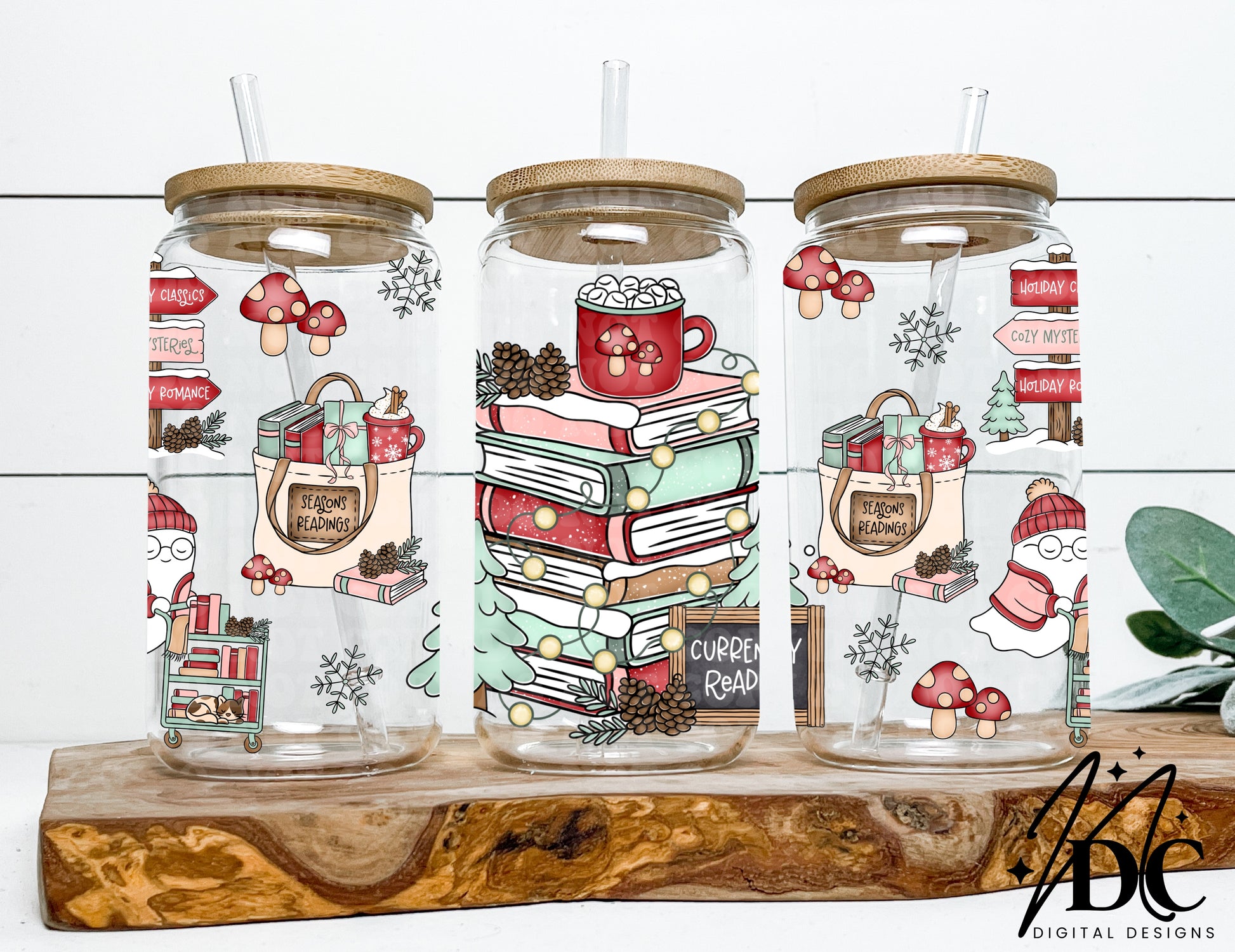 Currently Reading Winter Bookstack Glass Can Wrap Digital PNG