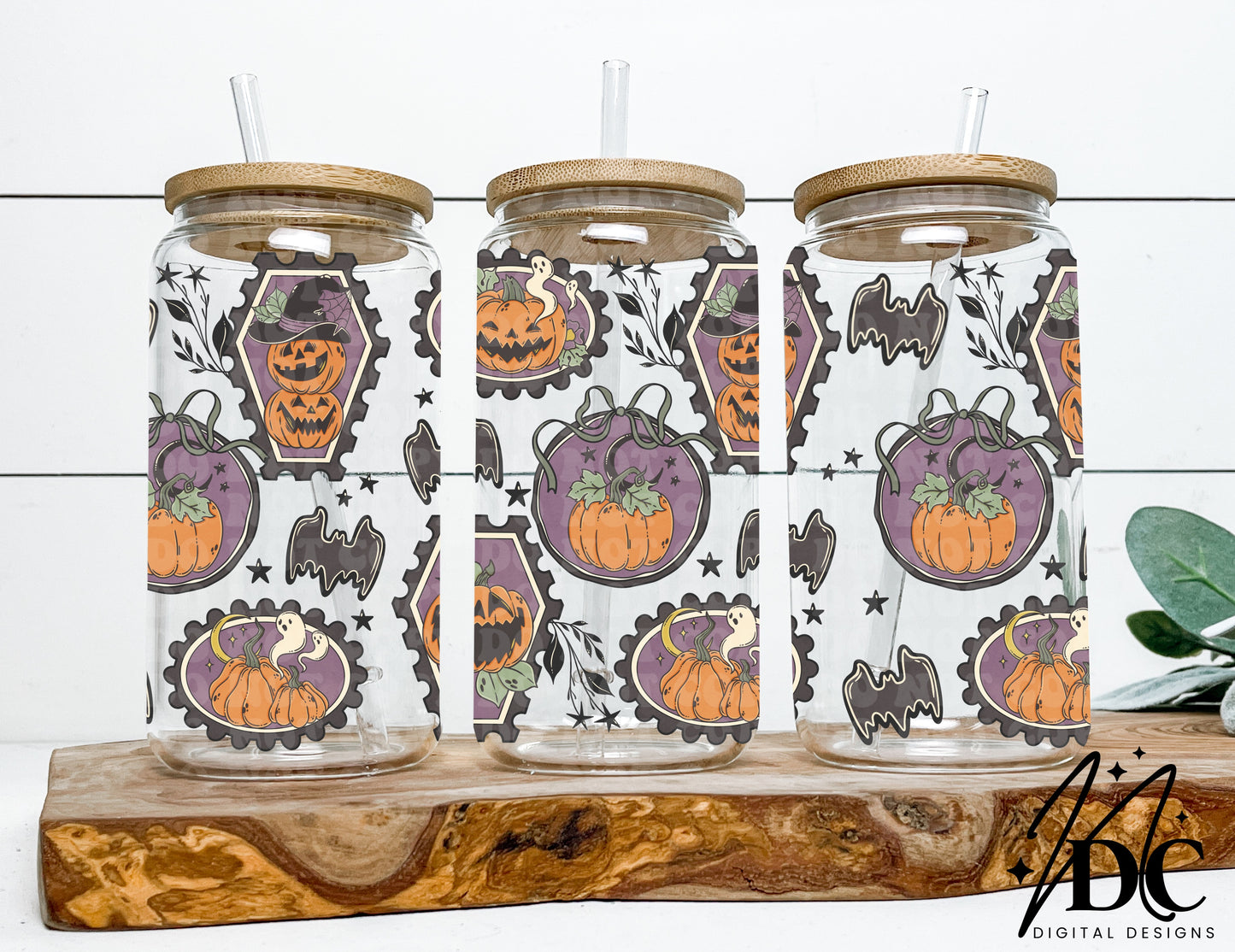 Vintage Pumpkin Stamp Collage Glass Can Wrap Digital PNG